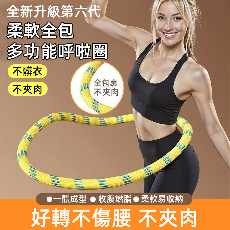 全新升級第五代柔軟全包呼拉圈,柔軟全包超貼心。不髒衣、不夾肉,轉動時舒服又安全,收腹燃脂超高效,一體成型設計,輕鬆轉出纖細腰線 ,收納方便不佔空間